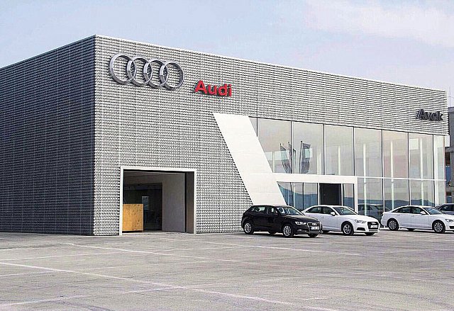Banking Service, Mirror Finish Stainless Steel Façade & Expanded Mesh Suspended Ceiling